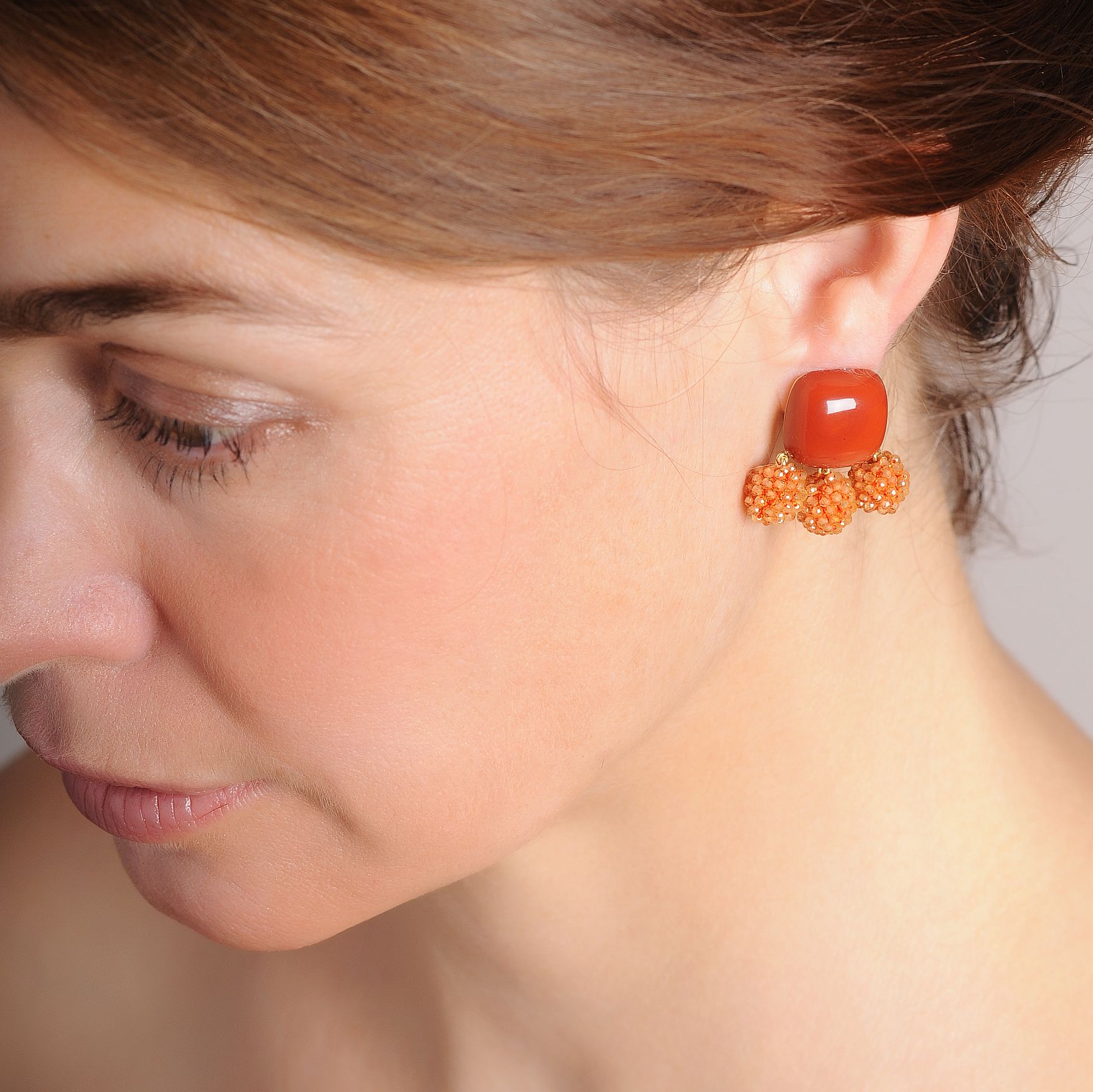 Christine Köppel, Ohrclips »Jaspis + Mandaringranat-Kugeln«