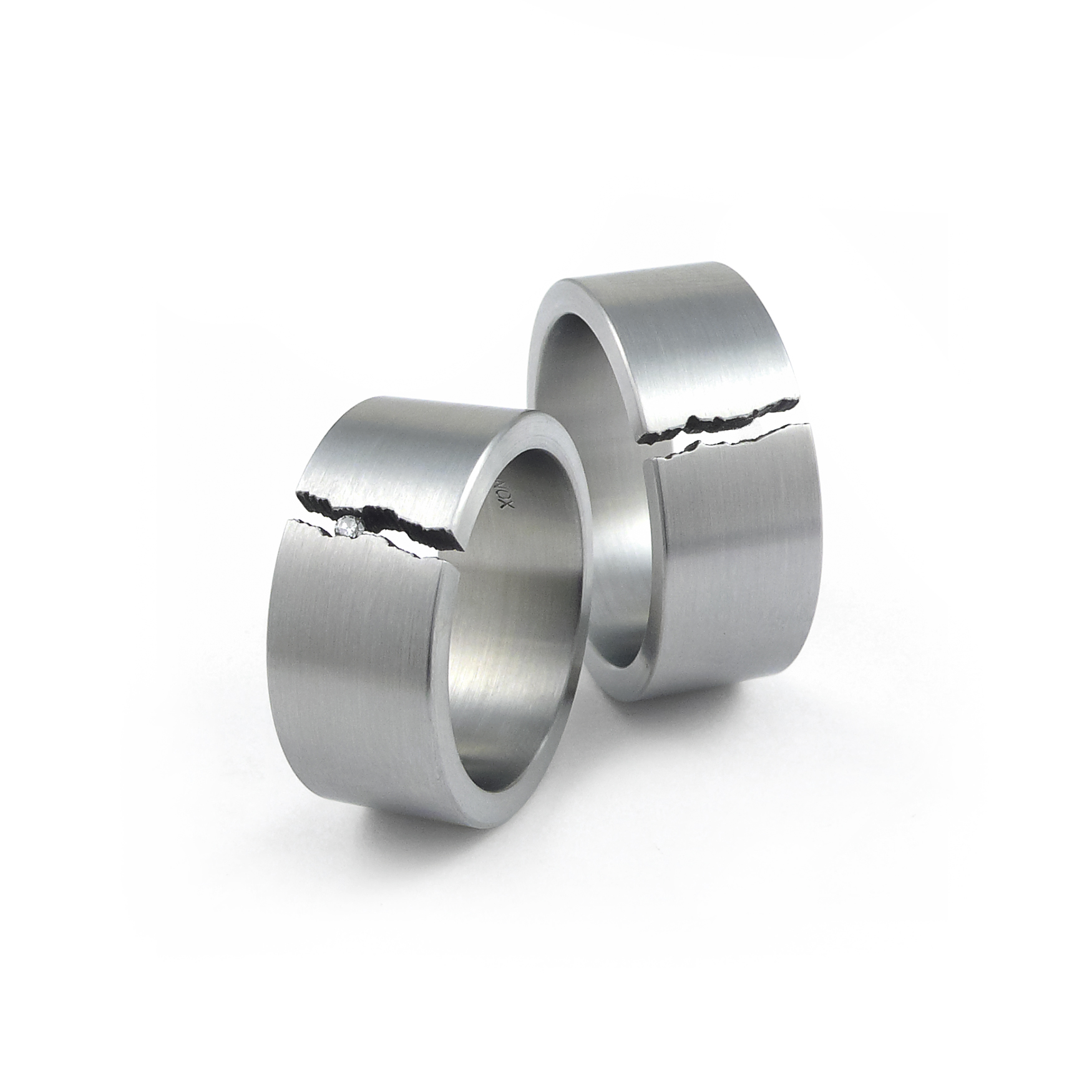 Paar, Edelstahl, Ring oben: 2,5 mm breit, 450 € + Ring unten: 5 mm breit, 500 €